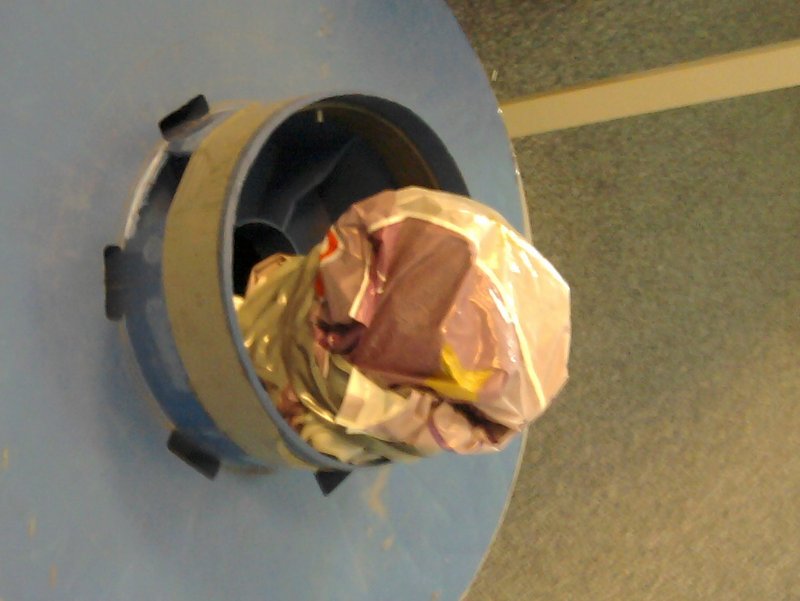 Cover the Encasement and GPStracker in several layers of plastic bags. Use duct tape for finishing up and to add that typical authentic touch.